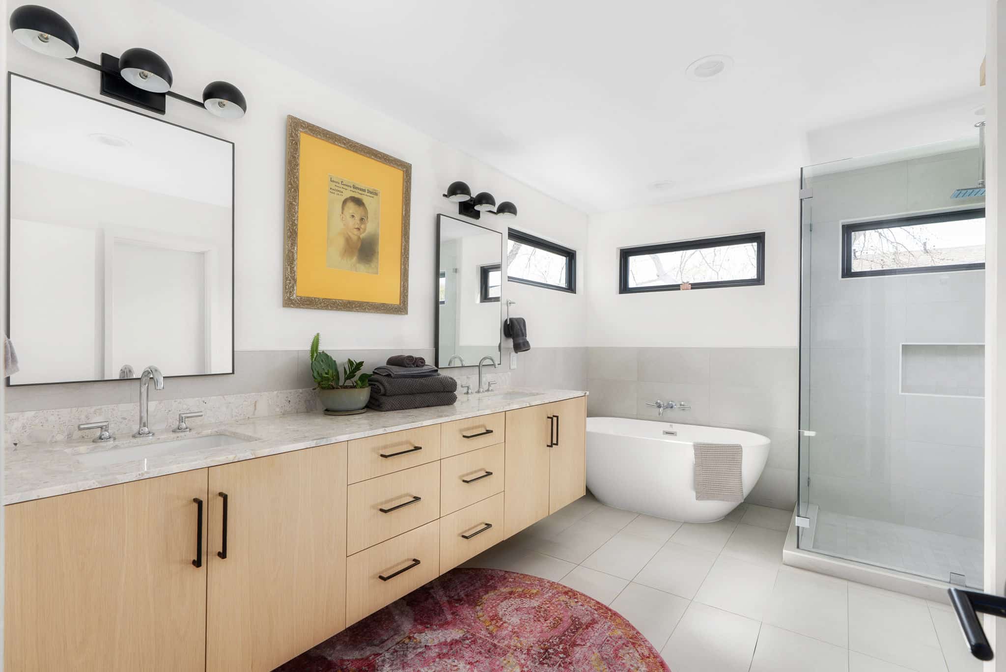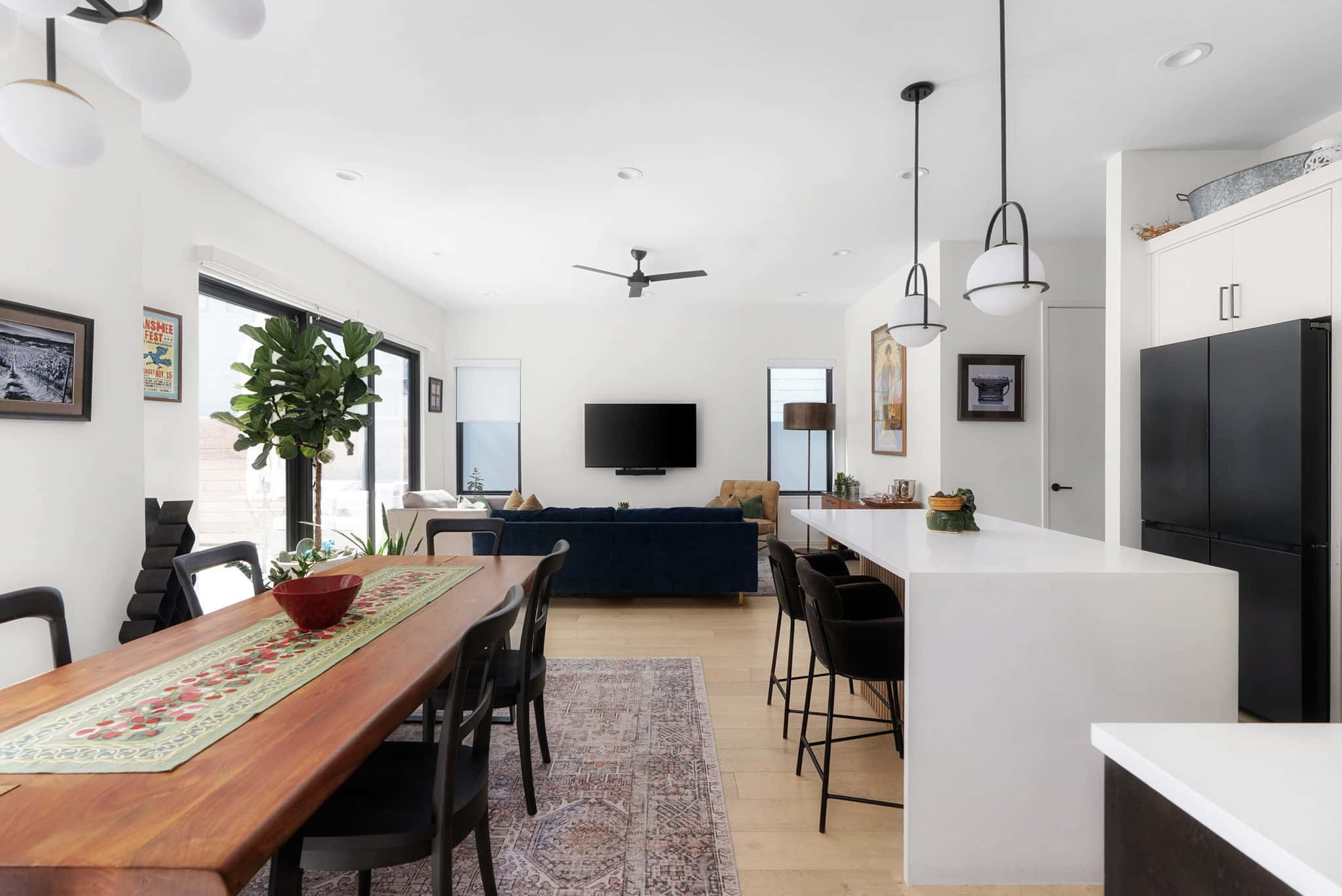 When you arrive at the Central Austin Oasis with Pool, you’re welcomed by a carefully styled entrance that sets the stage for your stay. On the first floor, the bunk room with three twin beds sits alongside a full bathroom, while the main living area brings everyone together. The kitchen opens seamlessly into a bright lounge, and from there sliding doors lead straight to the backyard.