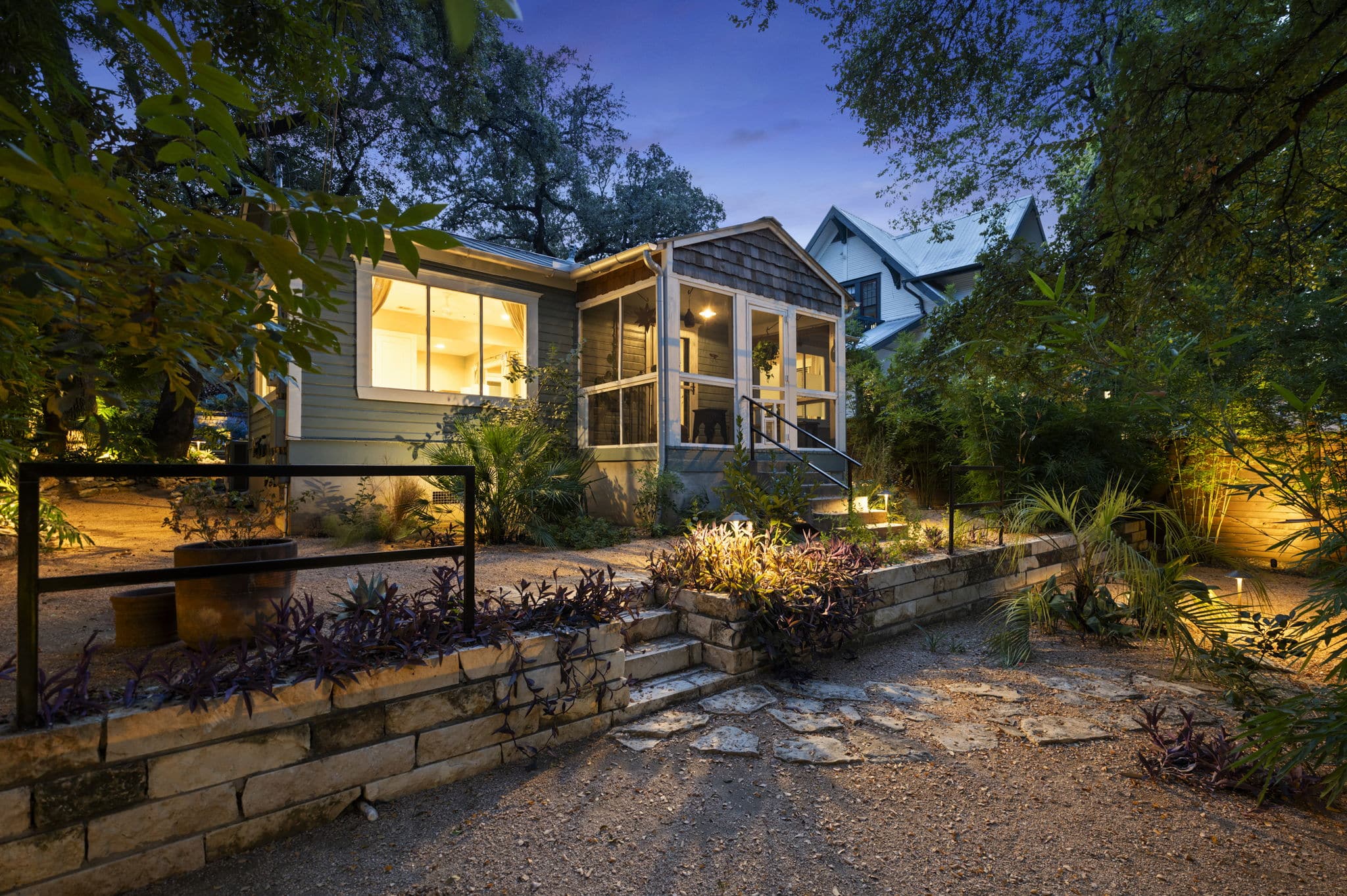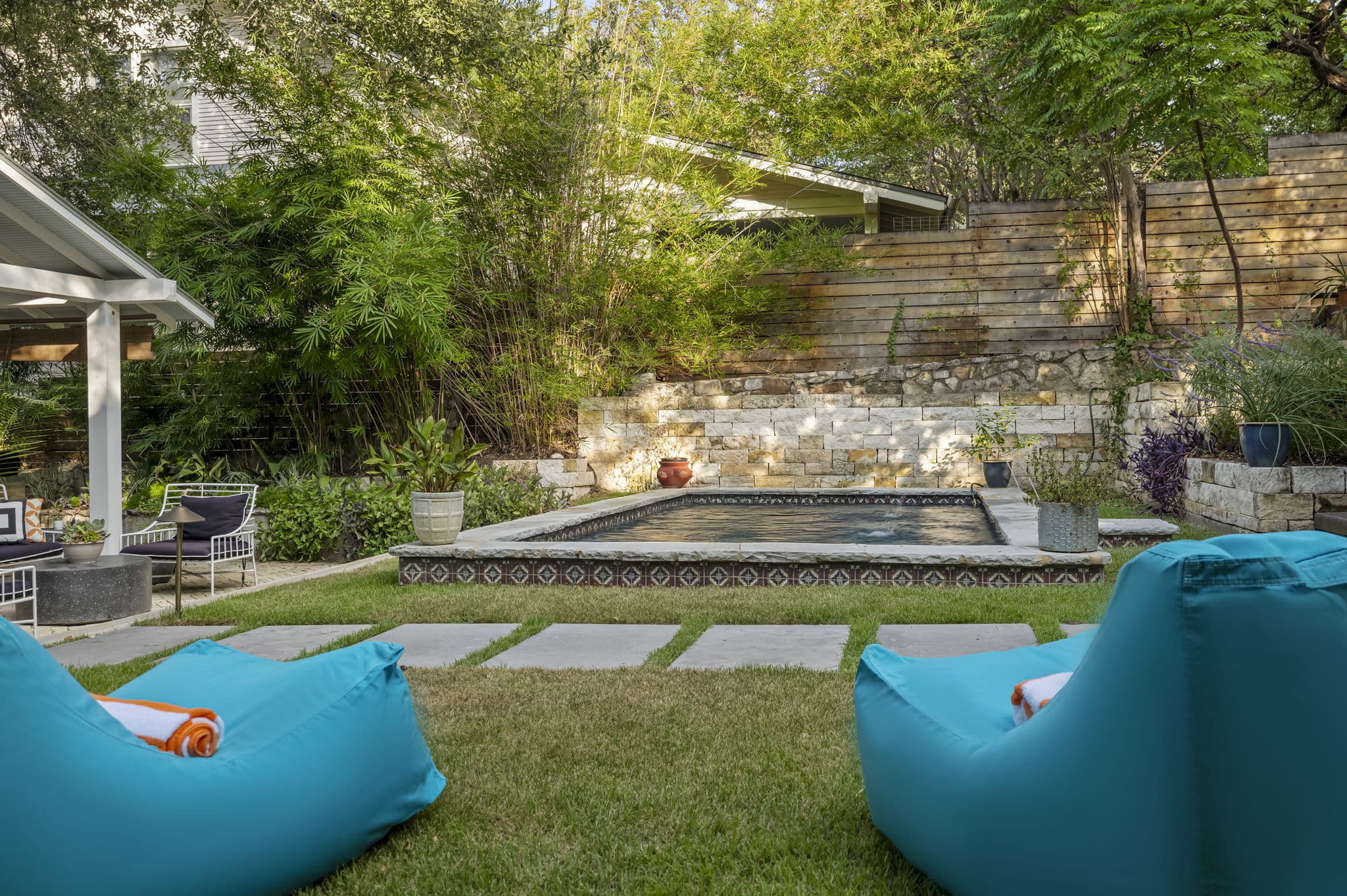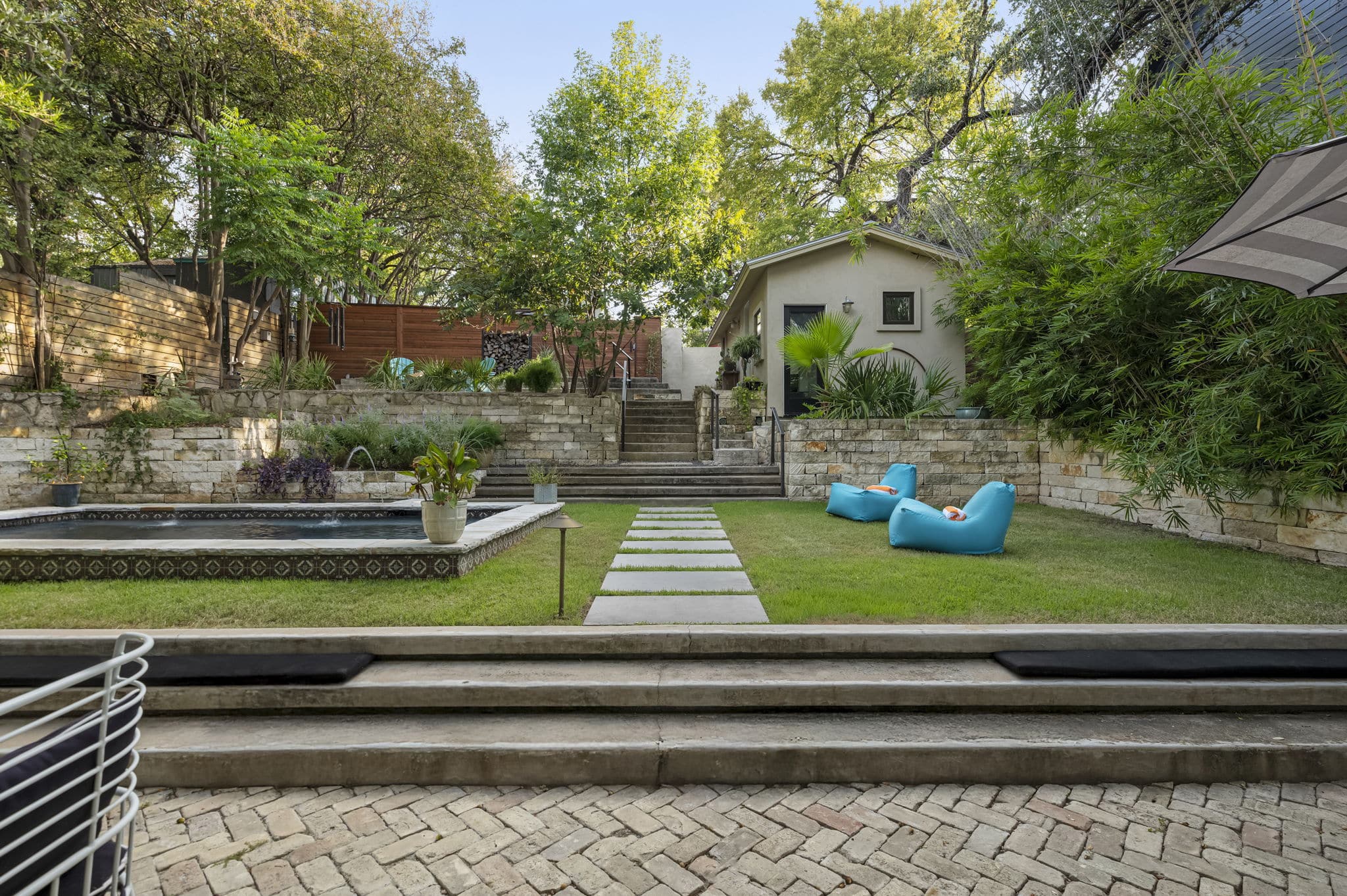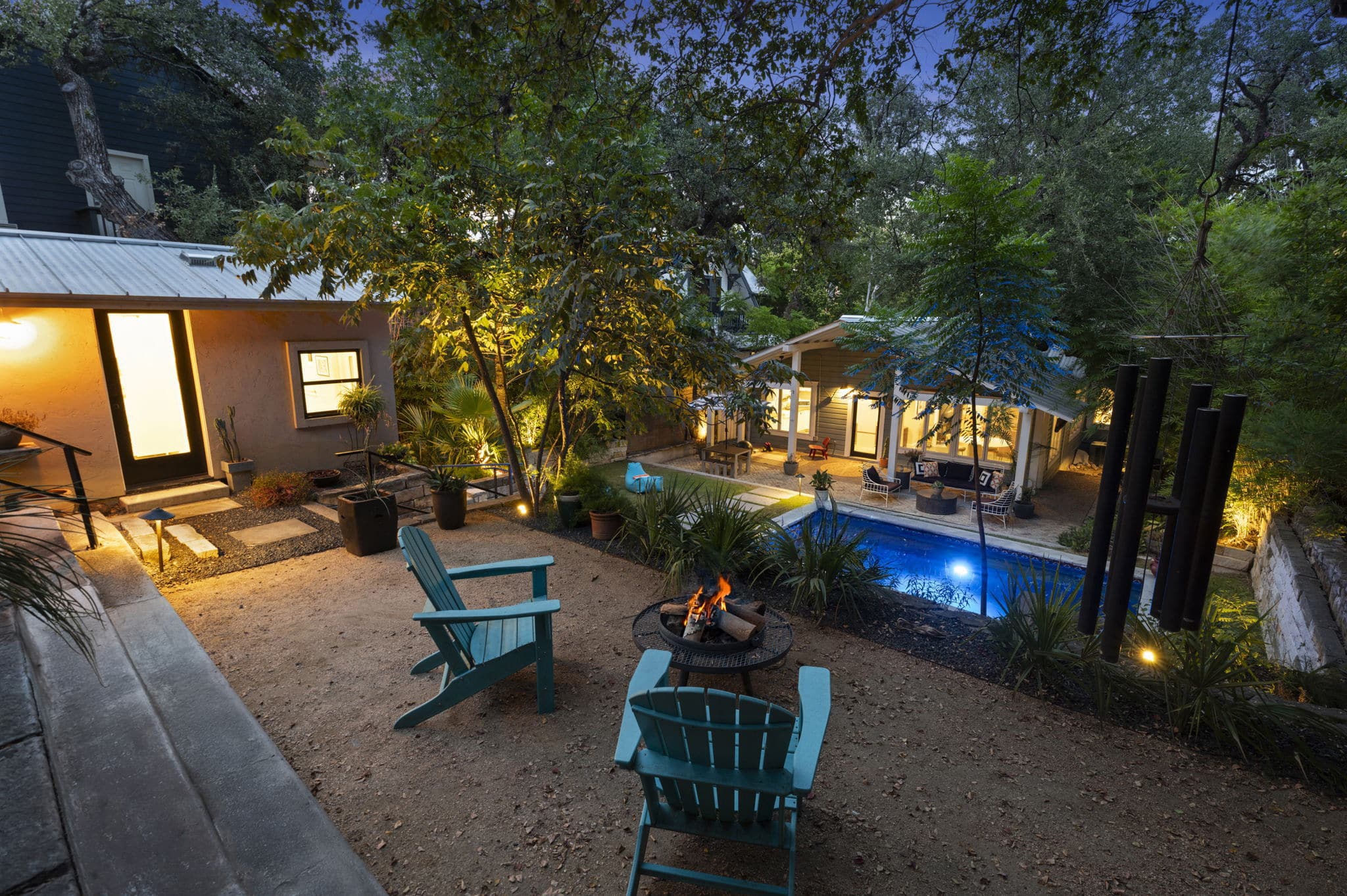 Perched on a hillside in Travis Heights, one of Austin’s most sought-after neighborhoods, this lush retreat offers three distinct layers of living: a private one bedroom, one bath Casita with kitchenette and outdoor firepit lounge, a heated saltwater pool framed by limestone and lush greenery, and a main house with two bedrooms, two baths, and soaring windows. Natural landscaping flows throughout, creating a hidden sanctuary minutes from downtown, SoCo, and Lady Bird Lake.