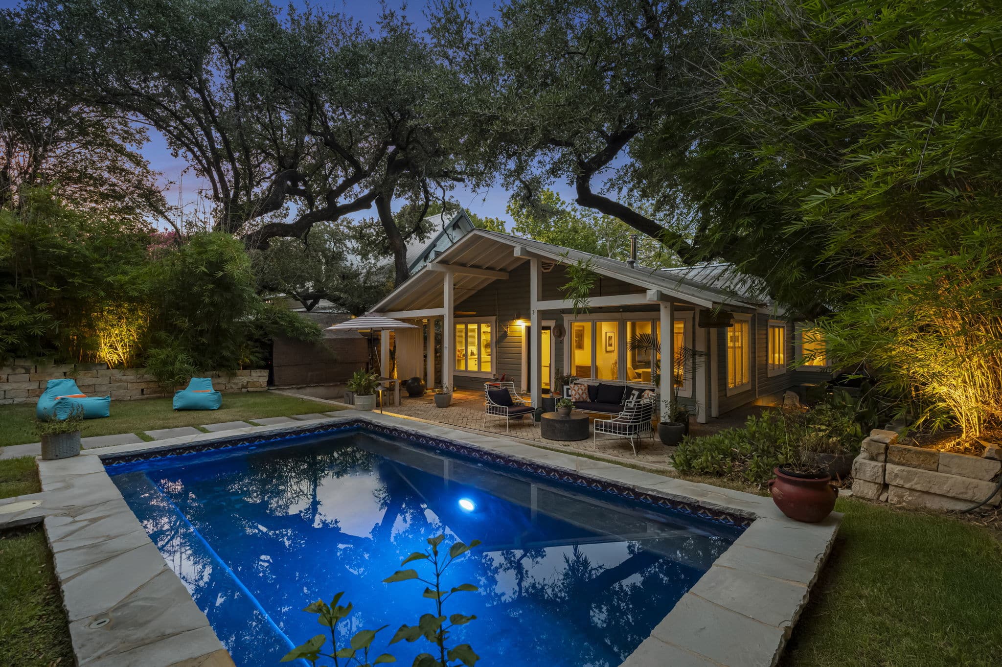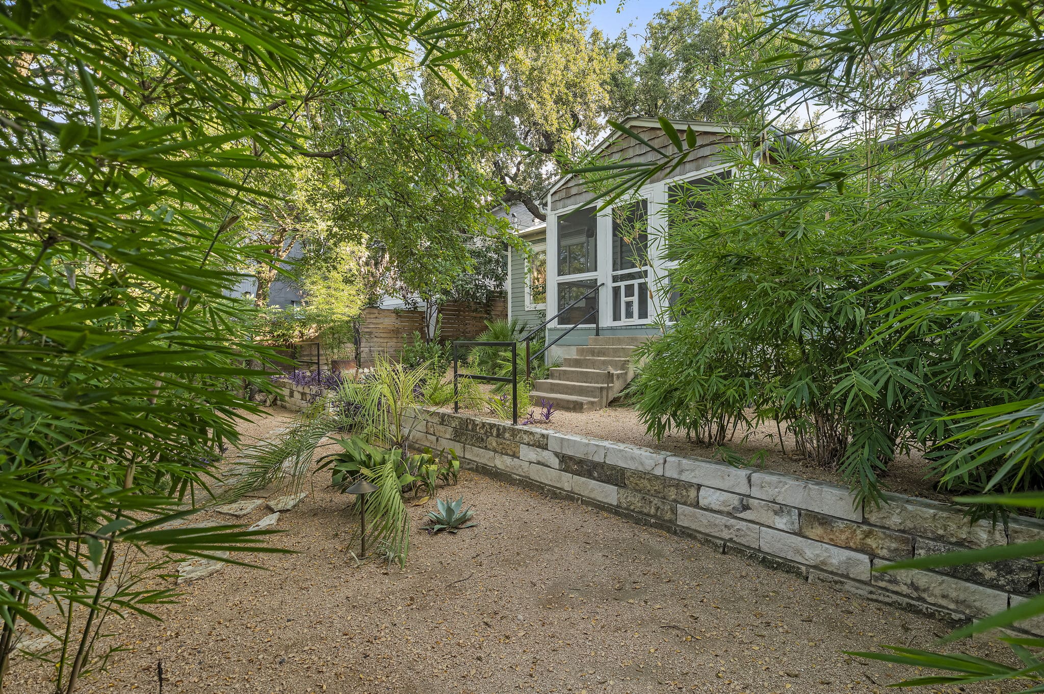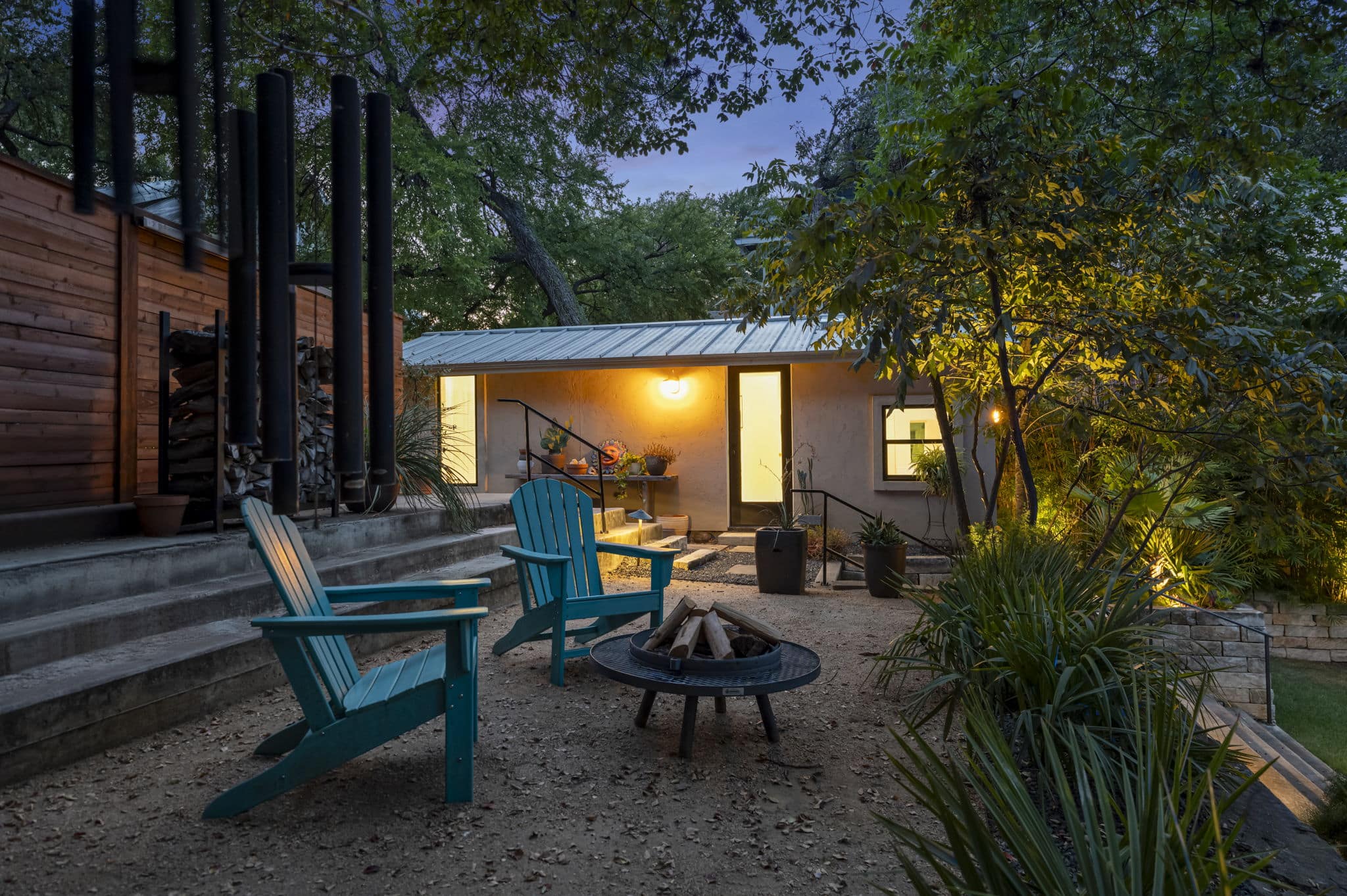Perched on a hillside in Travis Heights, one of Austin’s most sought-after neighborhoods, this lush retreat offers three distinct layers of living: a private one bedroom, one bath Casita with kitchenette and outdoor firepit lounge, a heated saltwater pool framed by limestone and lush greenery, and a main house with two bedrooms, two baths, and soaring windows. Natural landscaping flows throughout, creating a hidden sanctuary minutes from downtown, SoCo, and Lady Bird Lake.