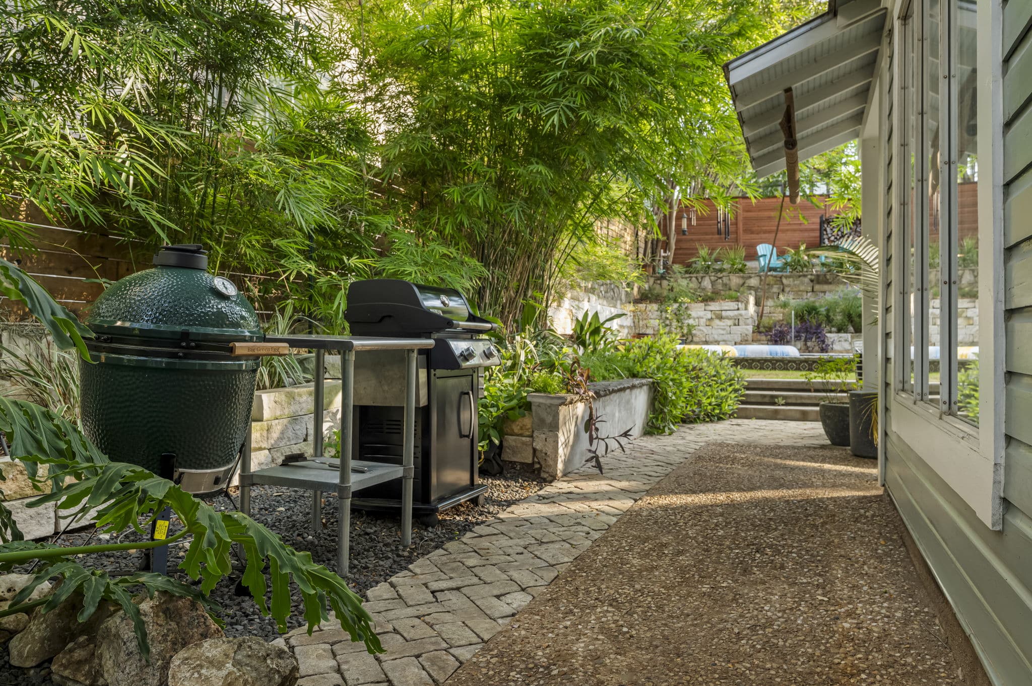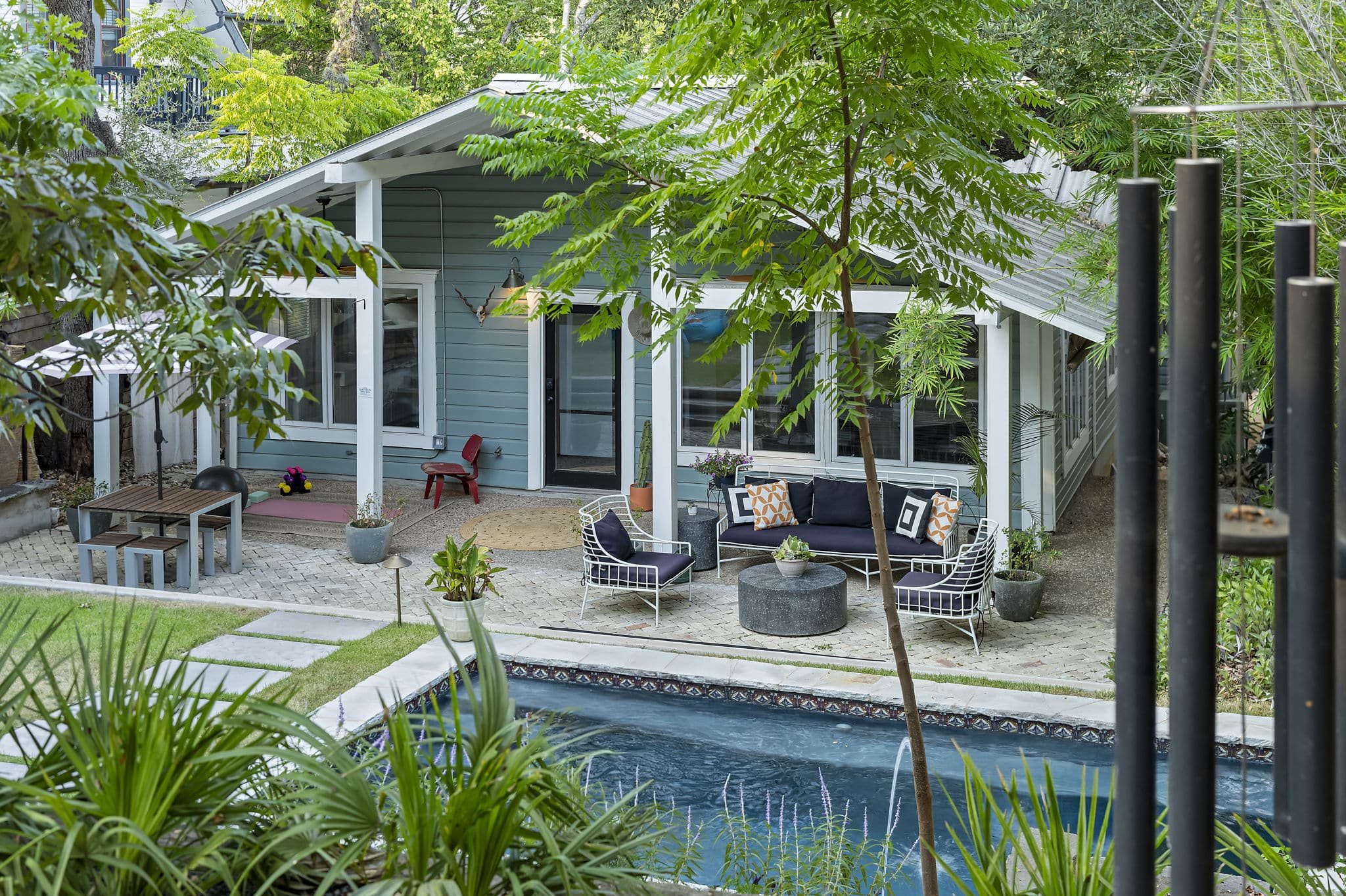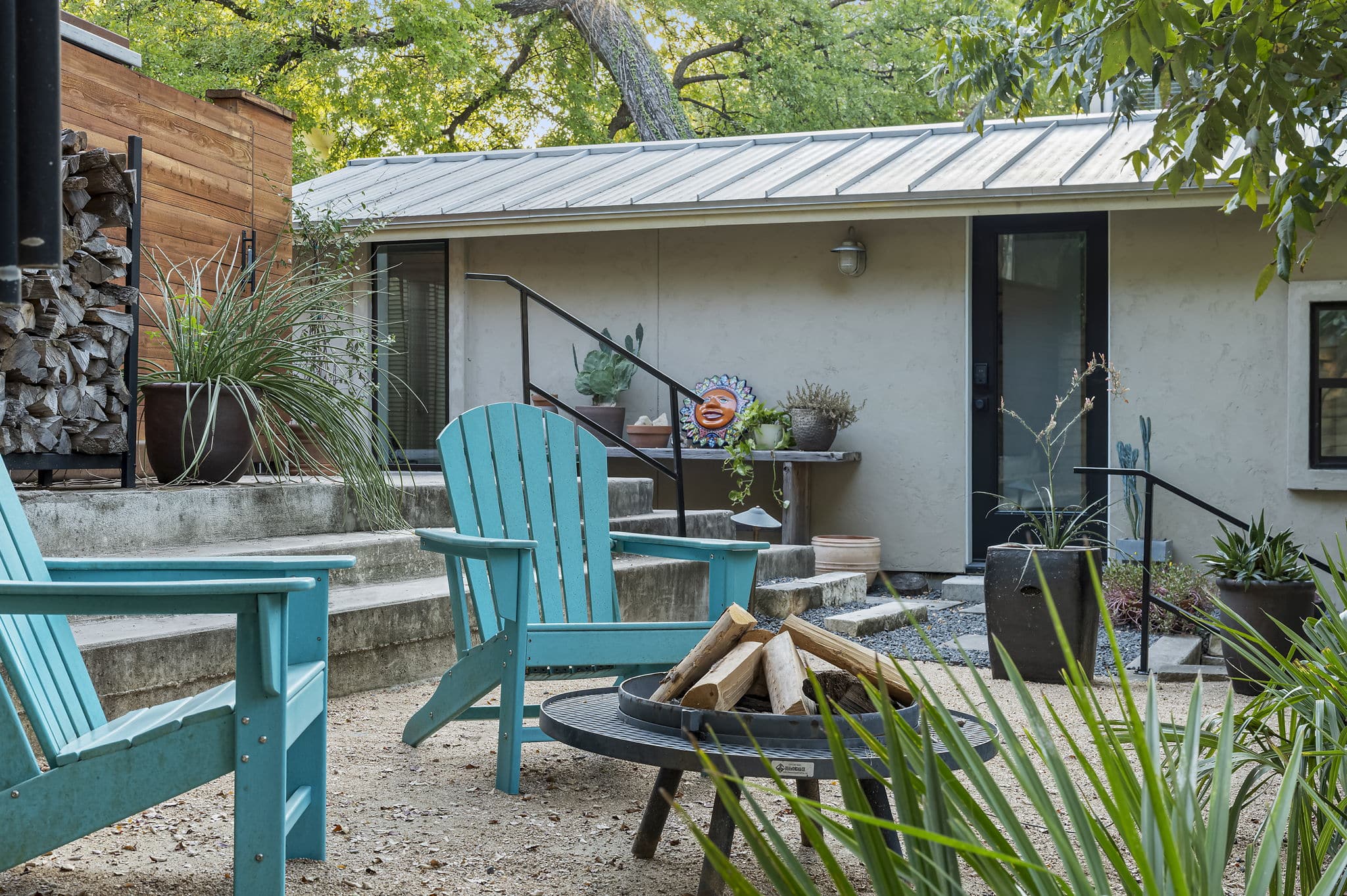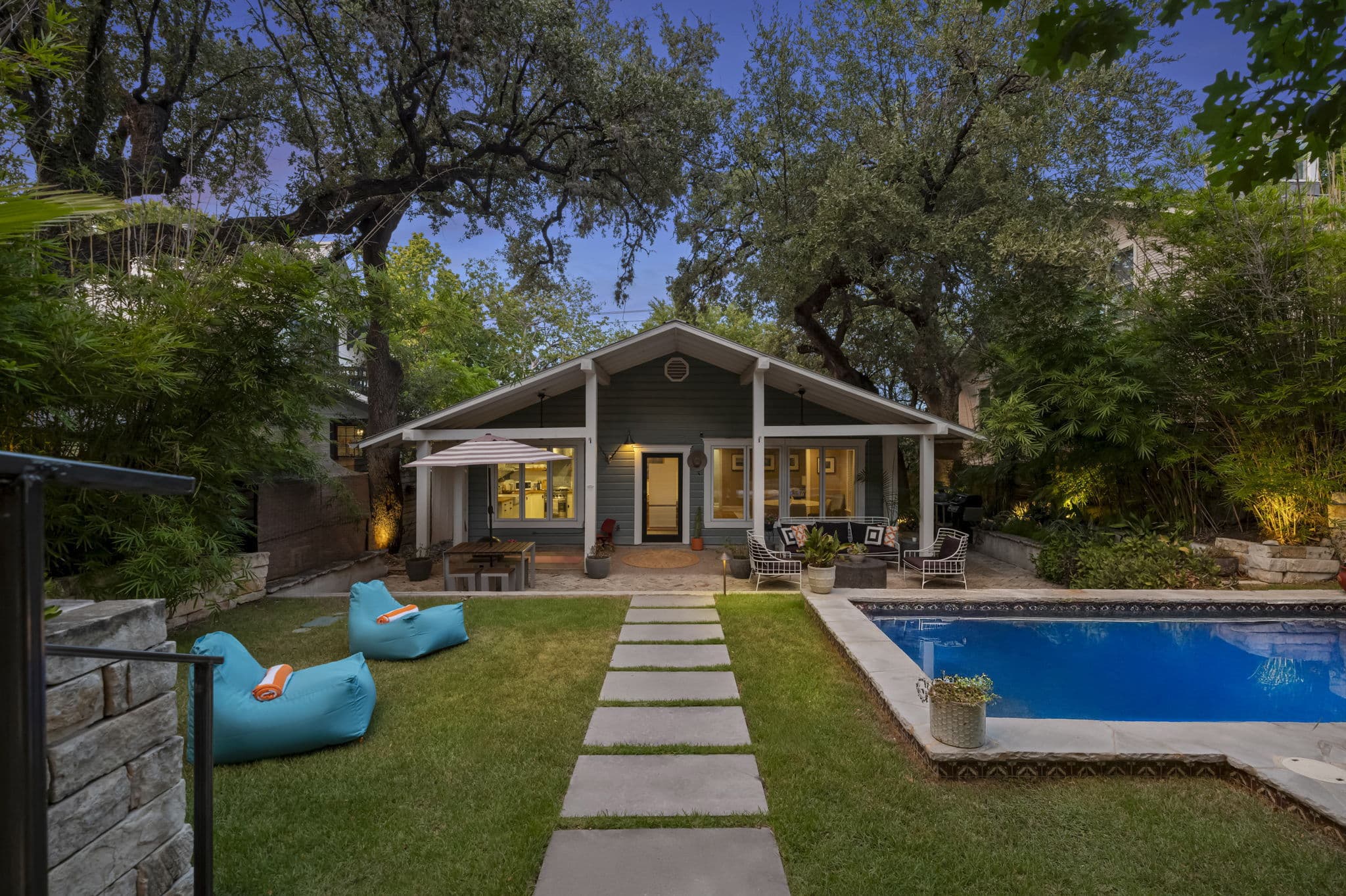 Perched on a hillside in Travis Heights, one of Austin’s most sought-after neighborhoods, this lush retreat offers three distinct layers of living: a private one bedroom, one bath Casita with kitchenette and outdoor firepit lounge, a heated saltwater pool framed by limestone and lush greenery, and a main house with two bedrooms, two baths, and soaring windows. Natural landscaping flows throughout, creating a hidden sanctuary minutes from downtown, SoCo, and Lady Bird Lake.