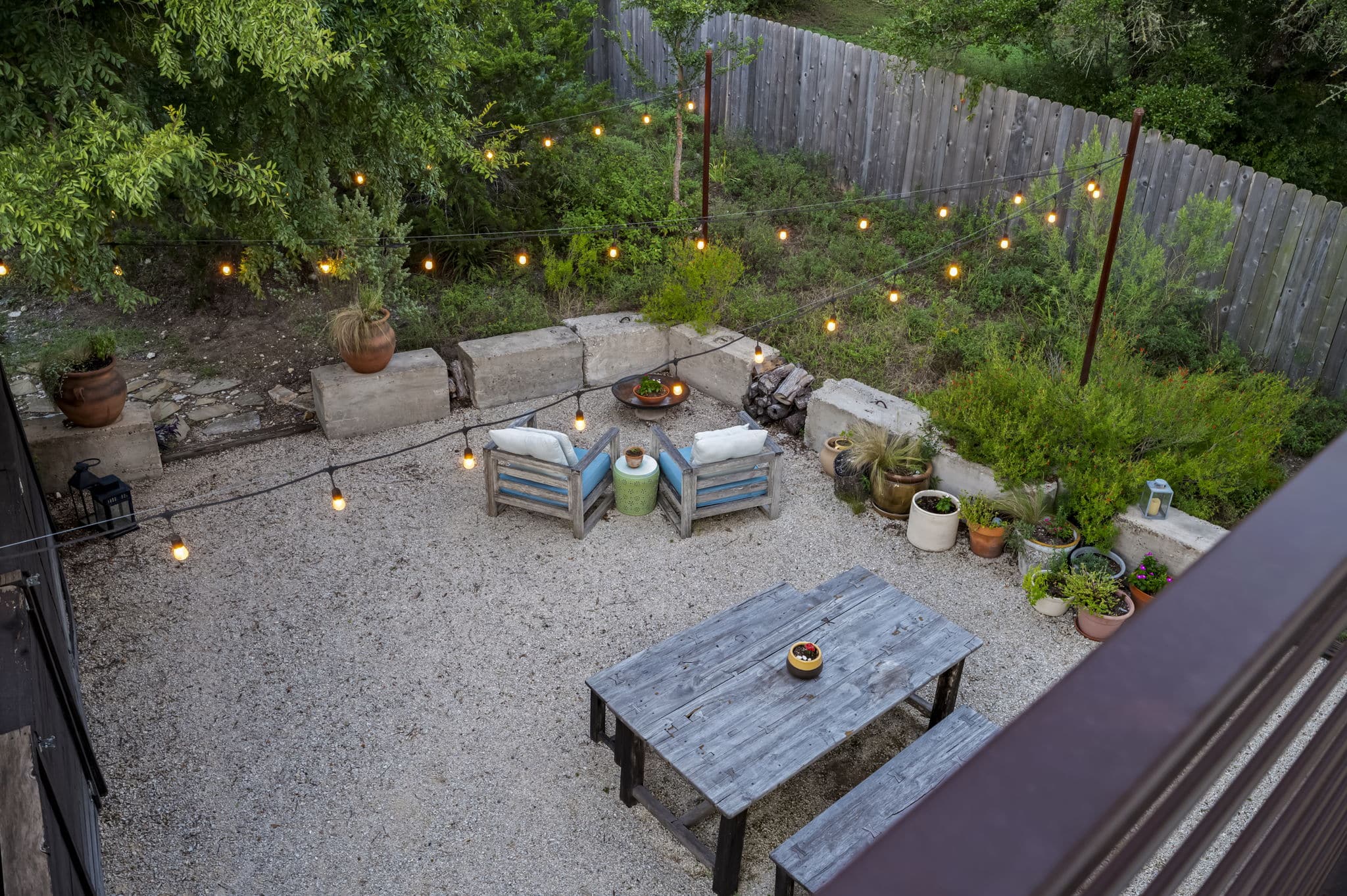 Gather for meals on the main house deck, grill out on the BBQ, or relax in the courtyard. Multiple seating areas and open space make it easy to enjoy the Texas sunshine.