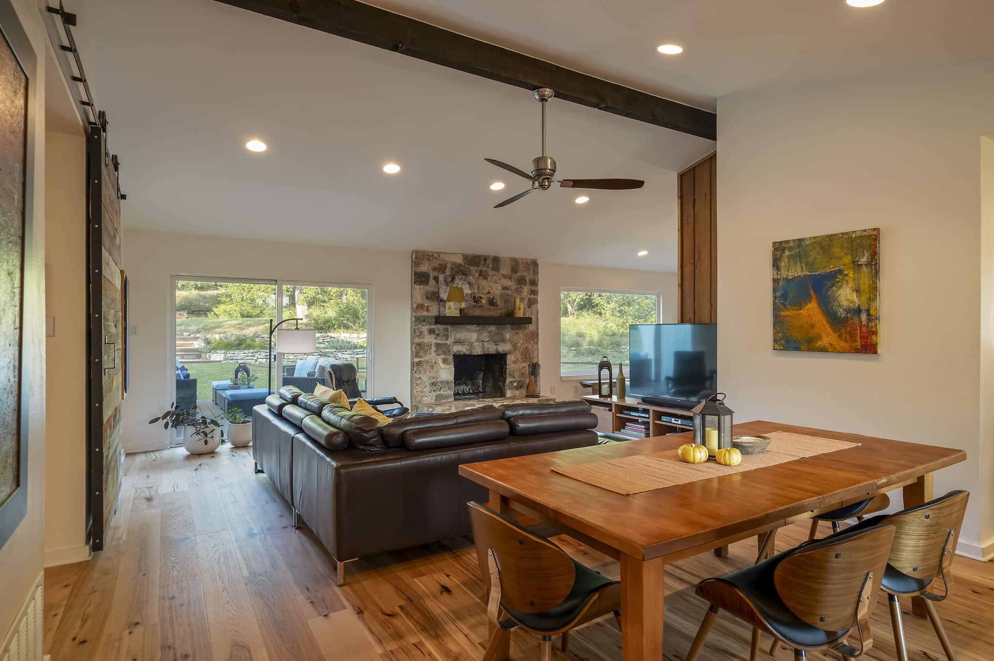 Enjoy the entire property during your stay, featuring a spacious 3-bedroom, 2-bath main home plus a private studio guest house. Perfect for groups who want to be together but still have extra space and privacy, this pet-friendly retreat offers multiple outdoor seating areas, a BBQ grill, and hammock. Backing onto 50 acres of greenery and only 15 minutes from downtown Austin, it’s the ideal spot to relax, connect, and enjoy open-air Texas living.