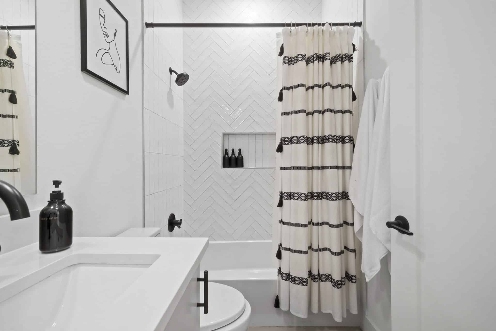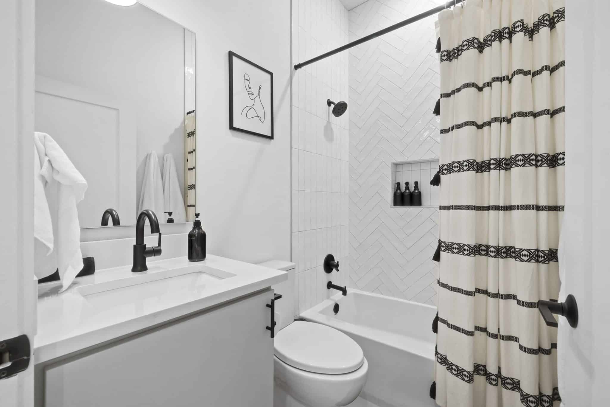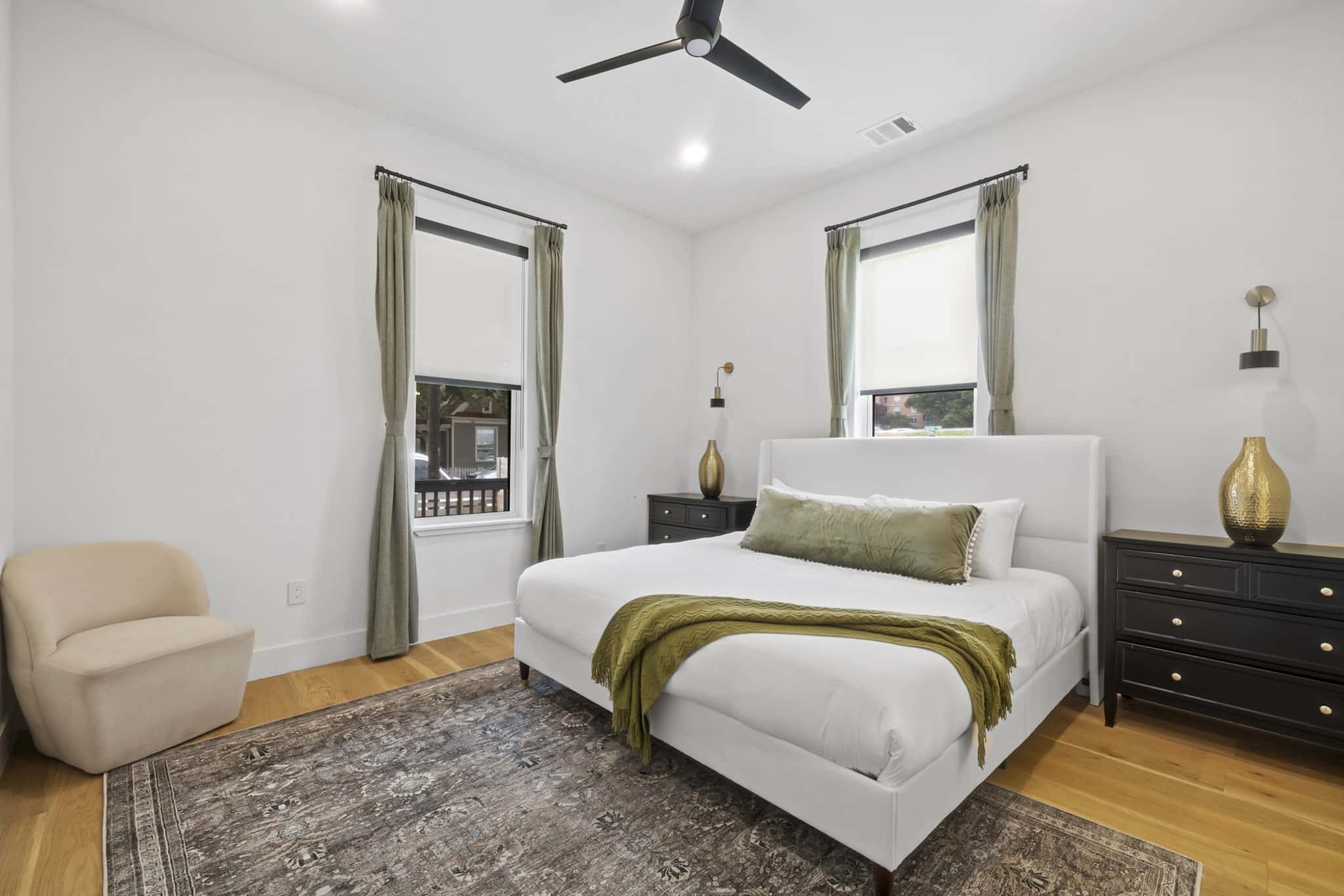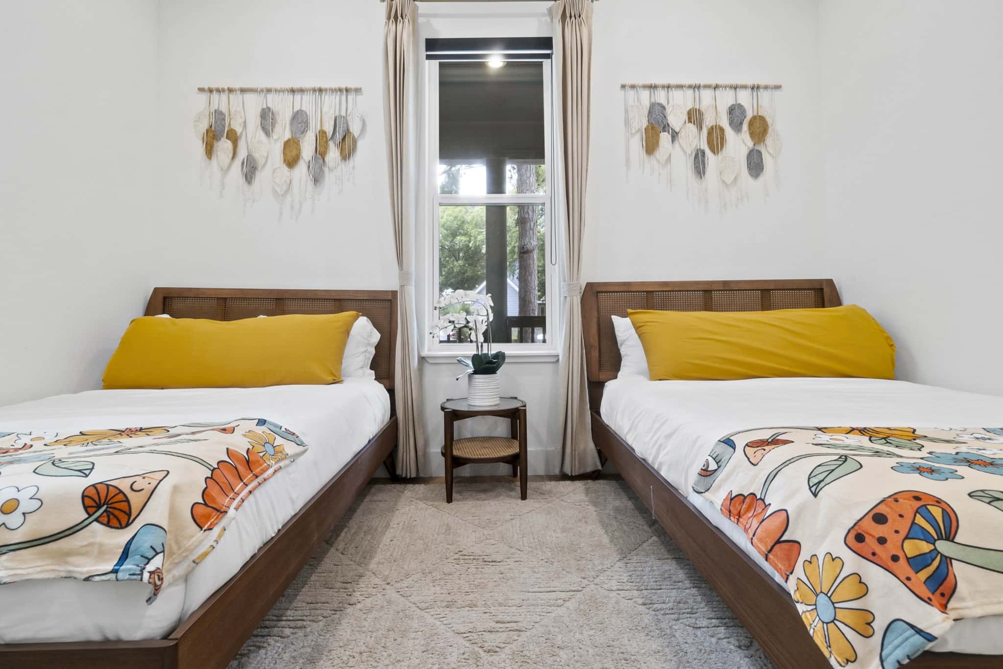The home features 3 thoughtfully appointed bedrooms, one of which includes two beds to accommodate additional guests or family members. Each room is a peaceful retreat, promising restful nights after exploring the city’s vibrant offerings. The residence also boasts two full bathrooms, providing convenience and privacy for all guests.