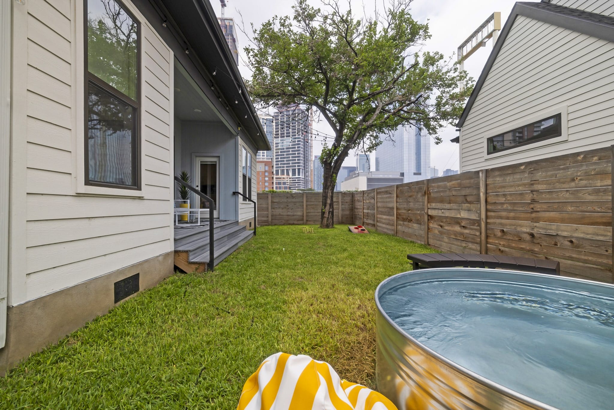 Experience Austin just steps from the buzz of Rainey Street. Cool off in the cowboy pool after a day in the city, then settle into a warm, stylish space that feels both high-end and playful. With 3 comfortable bedrooms plus extra sleeping options, this home delivers the perfect blend of comfort, character, and walkability for your Austin getaway.