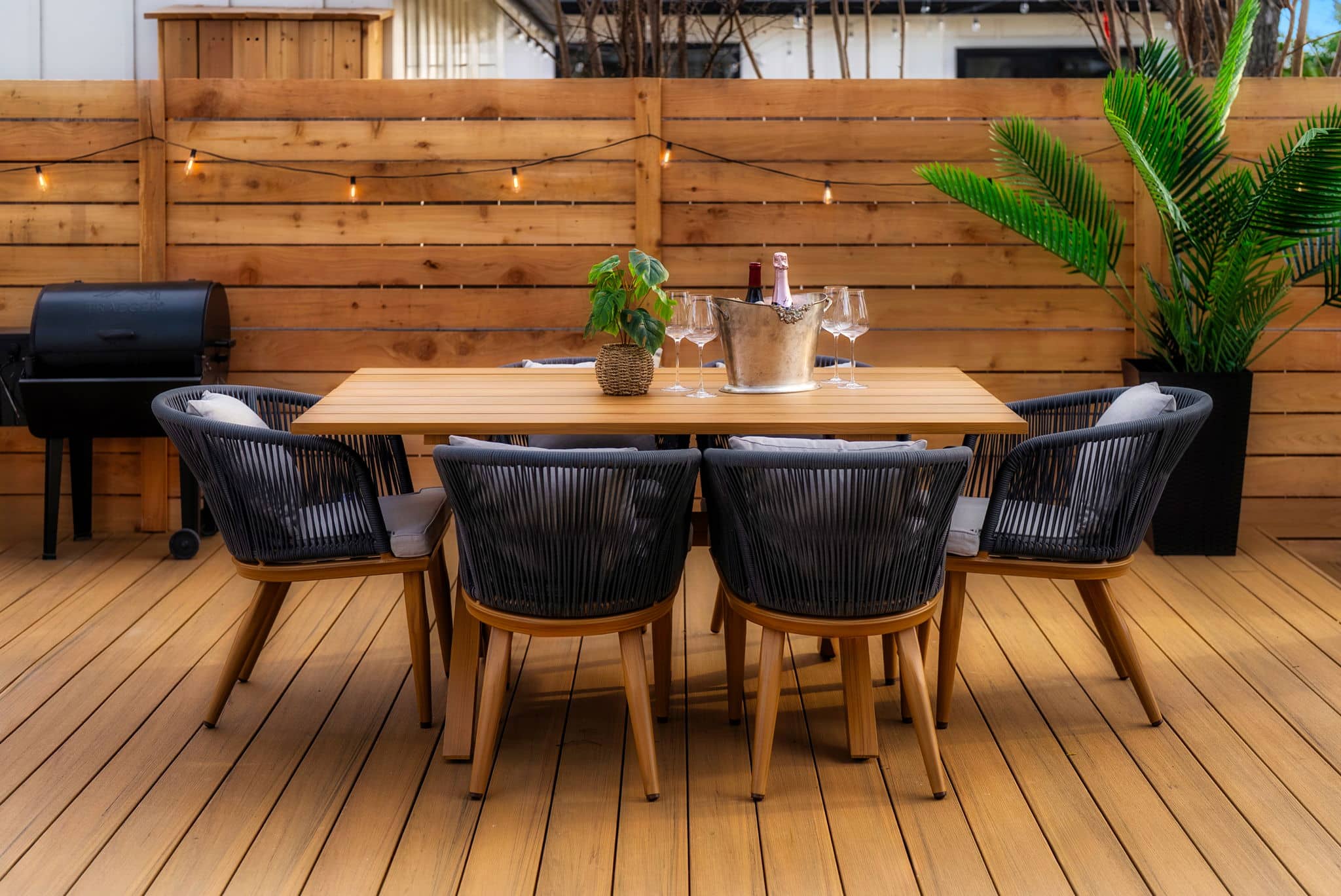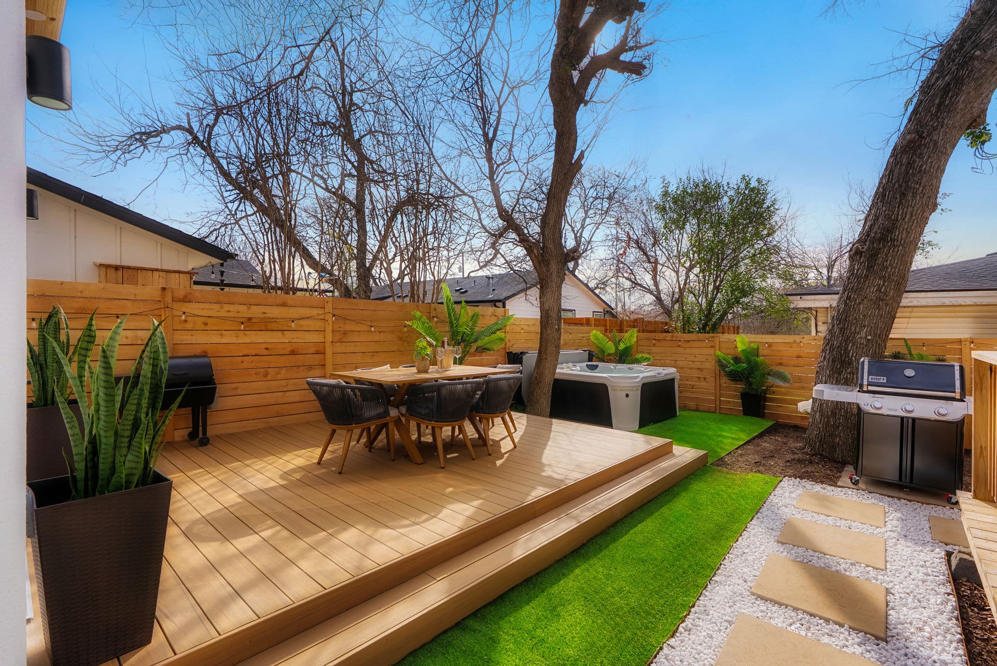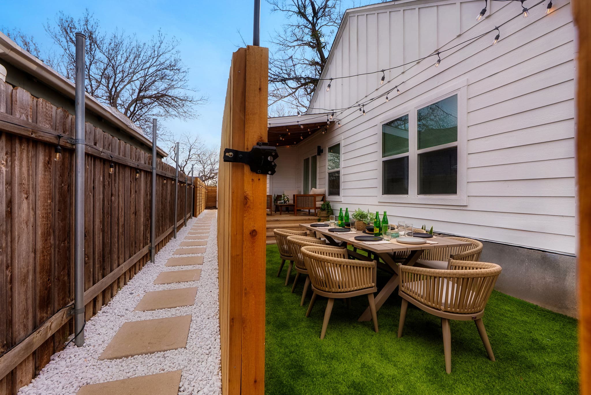 This East Austin retreat was designed with the polish of a boutique hotel and the intimacy of a private residence. Inside, curated textures and thoughtful details create a calm backdrop, while the private indoor infrared sauna invites a ritual of restoration. Step outside and the atmosphere shifts – string-lit evenings in the hot tub, fireside conversations that linger past midnight, and open-air dining that turns every meal into an occasion.
