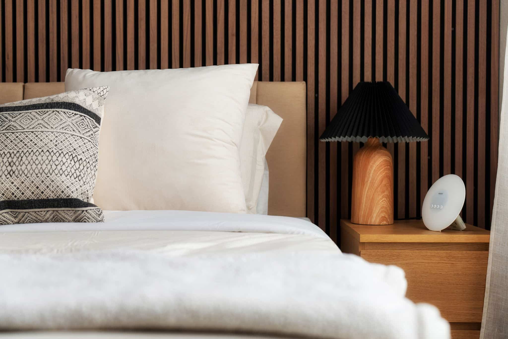 Four bedrooms balance comfort with design. The primary suite features a king bed. A second room offers flexibility, with 2 twin beds that are pushed together to create one large king bed. Another queen bedroom provides understated elegance, while the wellness room blends function and escape with a queen bed alongside the sauna. Each queen bedroom has it’s own ensuite bathroom. Each space is finished with Smart TVs and plush bedding for indulgent rest.