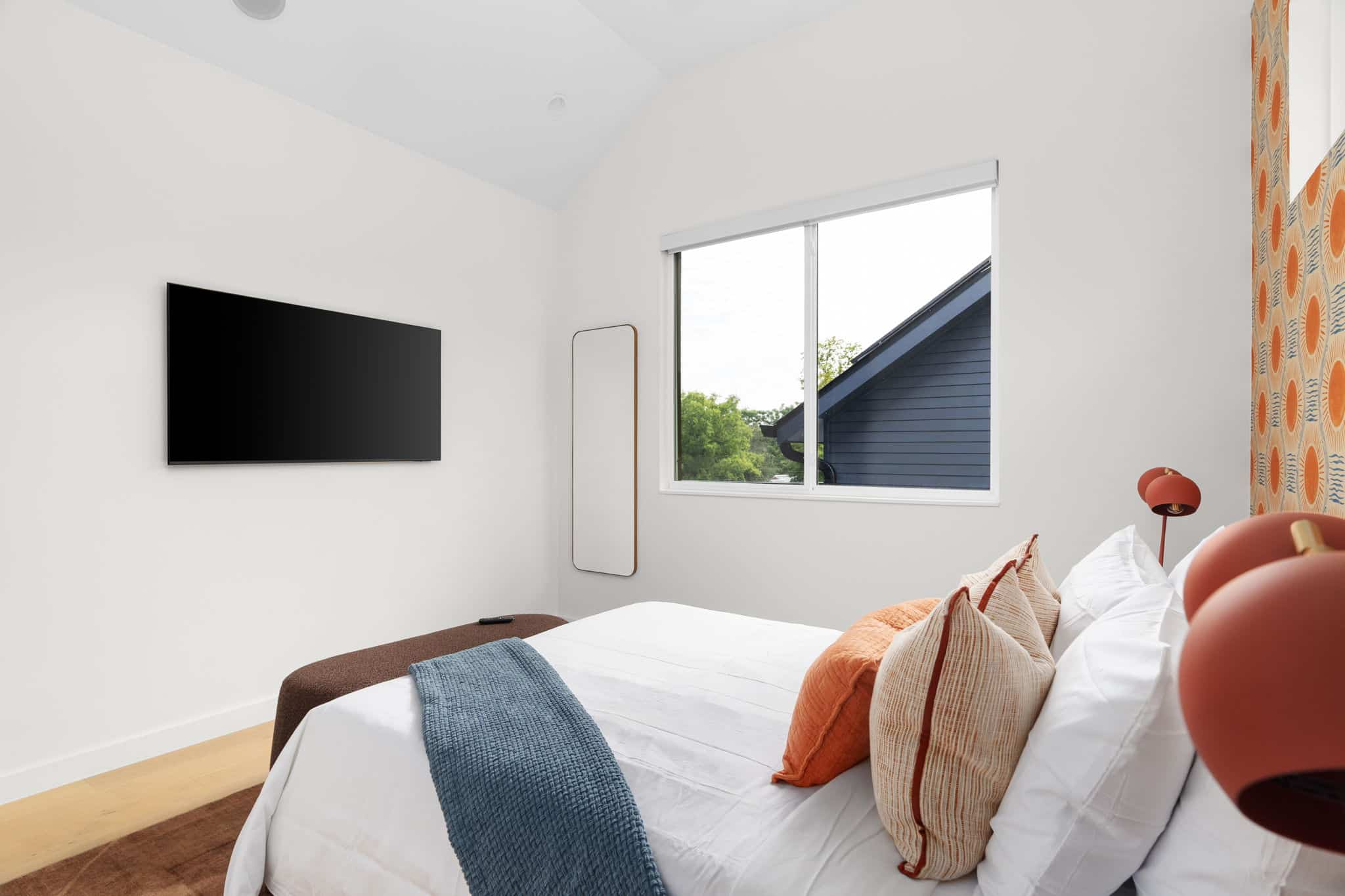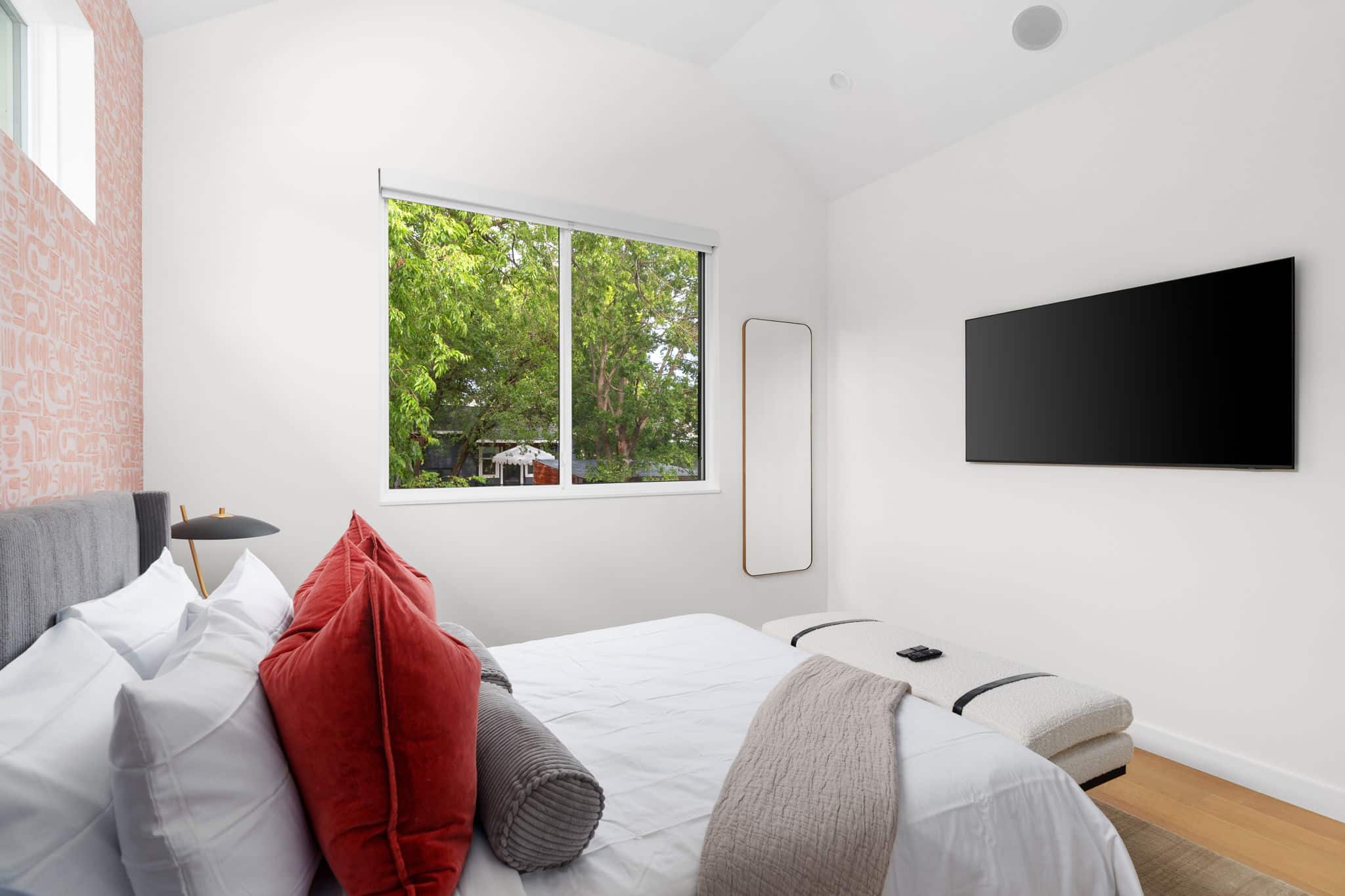 The ArtHaus is a bold, design-driven home in East Austin – built for relaxing, entertaining, and living well. Inside, you’ll find a gym, sauna, and striking architecture throughout. Out back, an Austin mural, pool, hot tub, grill and stylish lounge seating set the scene. With 6 bedrooms, 5 bathrooms, and space for up to 16 guests, it’s the perfect high-style home base just minutes from downtown.
