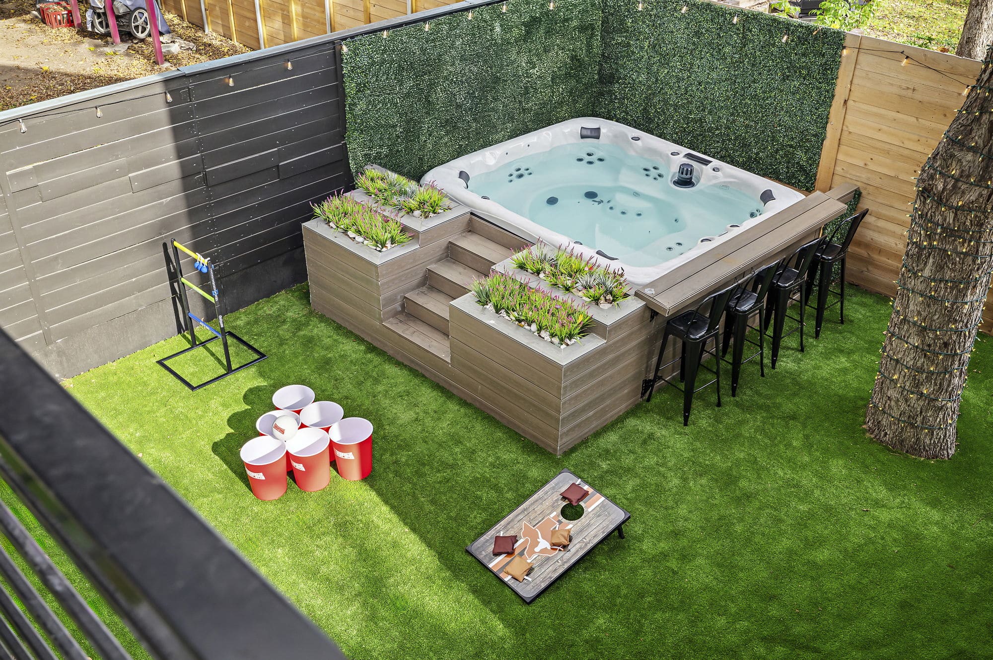 • Private Backyard: Hot tub, BBQ grill, and outdoor games.